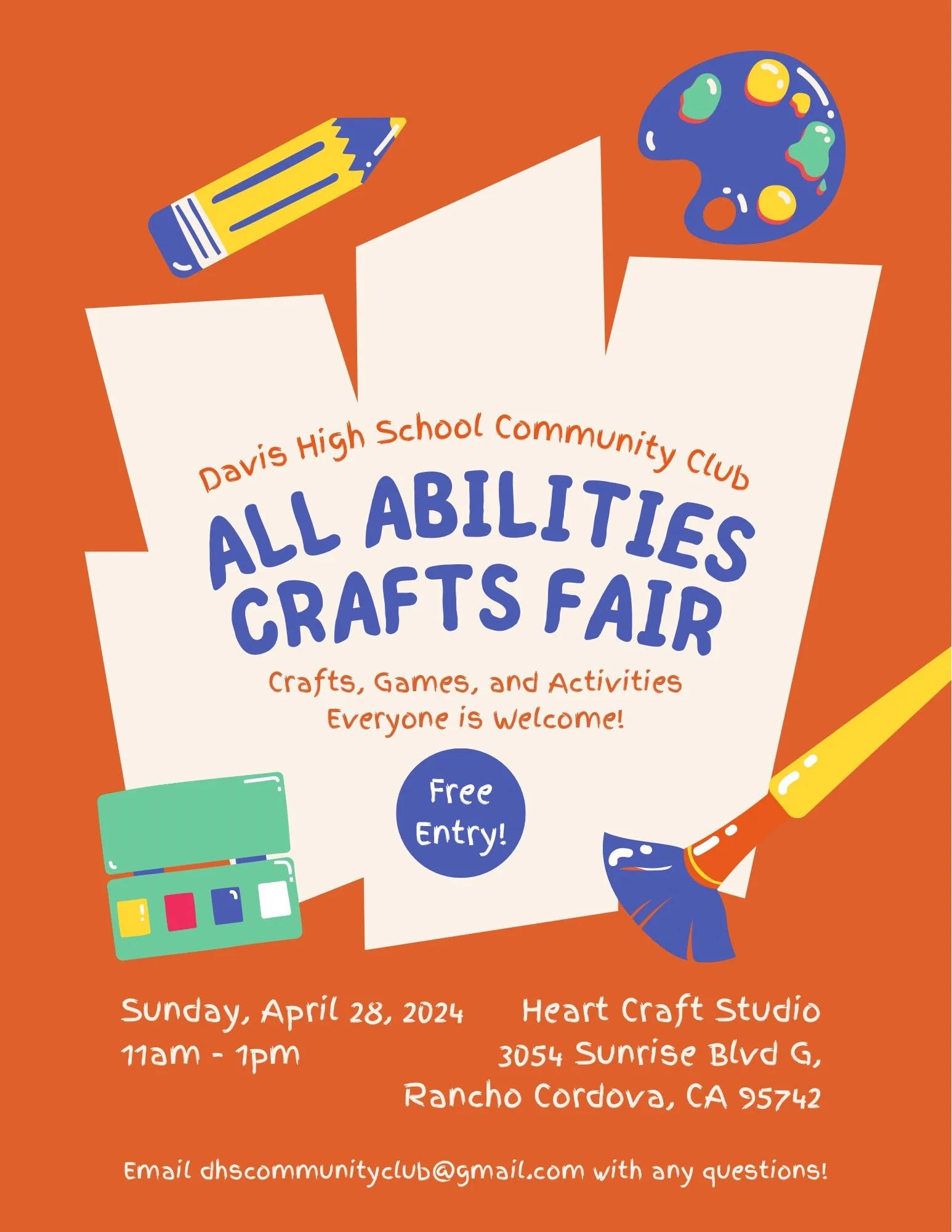 Heart Craft Studio in collaboration with the Davis High School Community Club will be hosting our THIRD ANNUAL All Abilities Crafts Fair! This inclusive event is a FREE, student-run crafts fair for individuals of all ages and abilities! ALL are welcome!