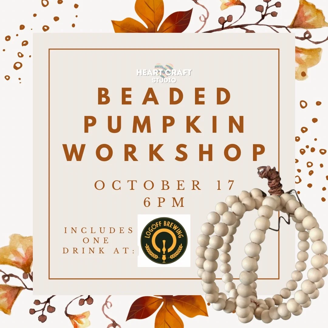 Create your own boho Fall decor at our Beaded Pumpkin Craft and Sip at our neighbors Log Off Brewery! Includes one drink!