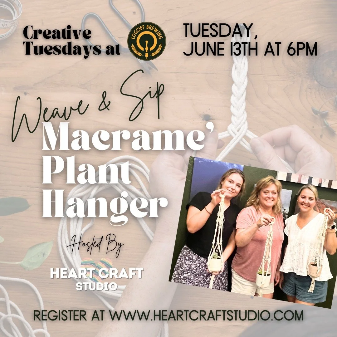 Learn the trendy yet timeless art of Macrame’ with us at Creative Tuesdays at Log Off Brewery in our next Plant Hanger Workshop! In this workshop, you will learn how to weave and create your own unique work of functional and trendy fiber art!