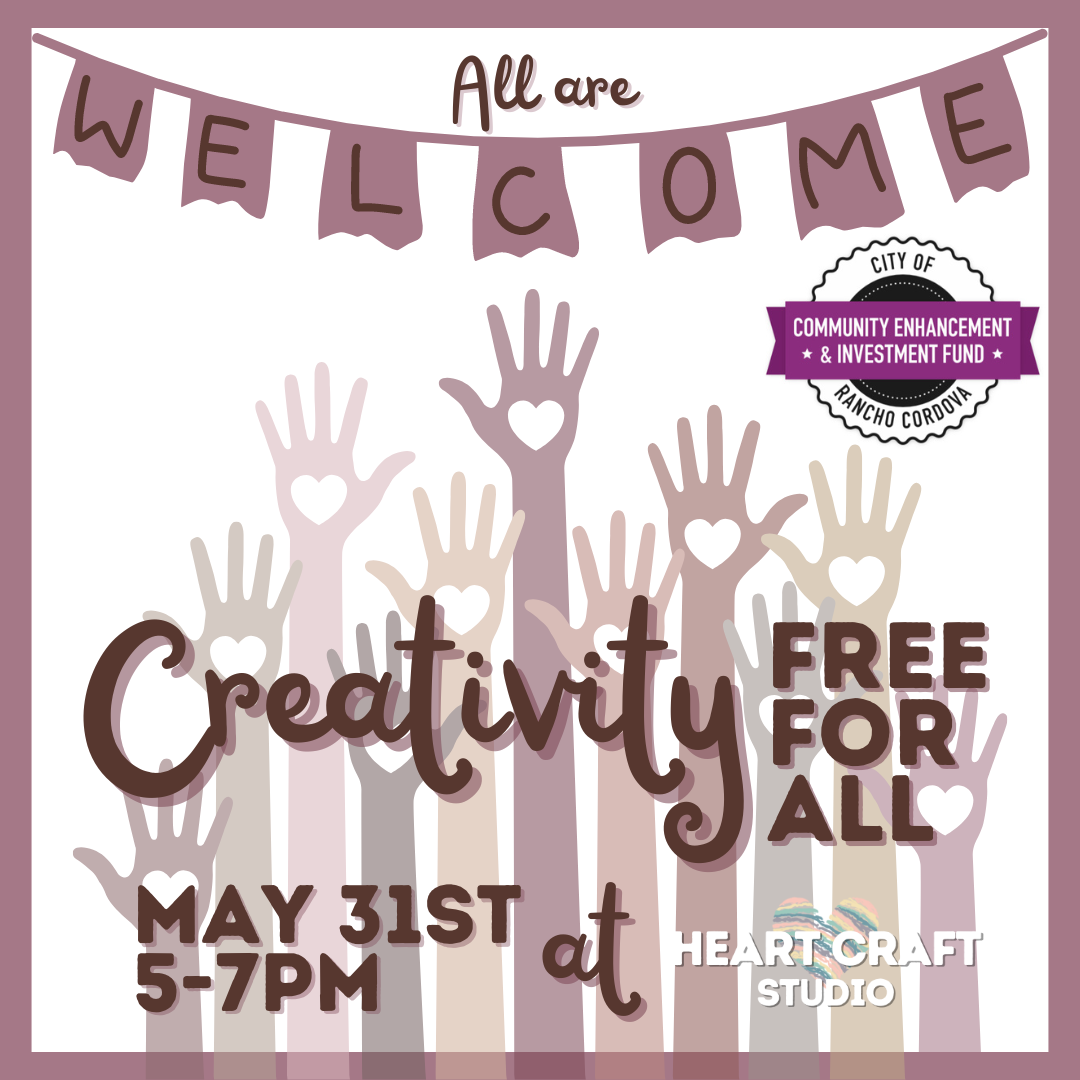 All are welcome at Heart Craft Studio! Join us for our Creativity FREE FOR ALL - a new, FREE, inclusive process art experience for ALL artists.