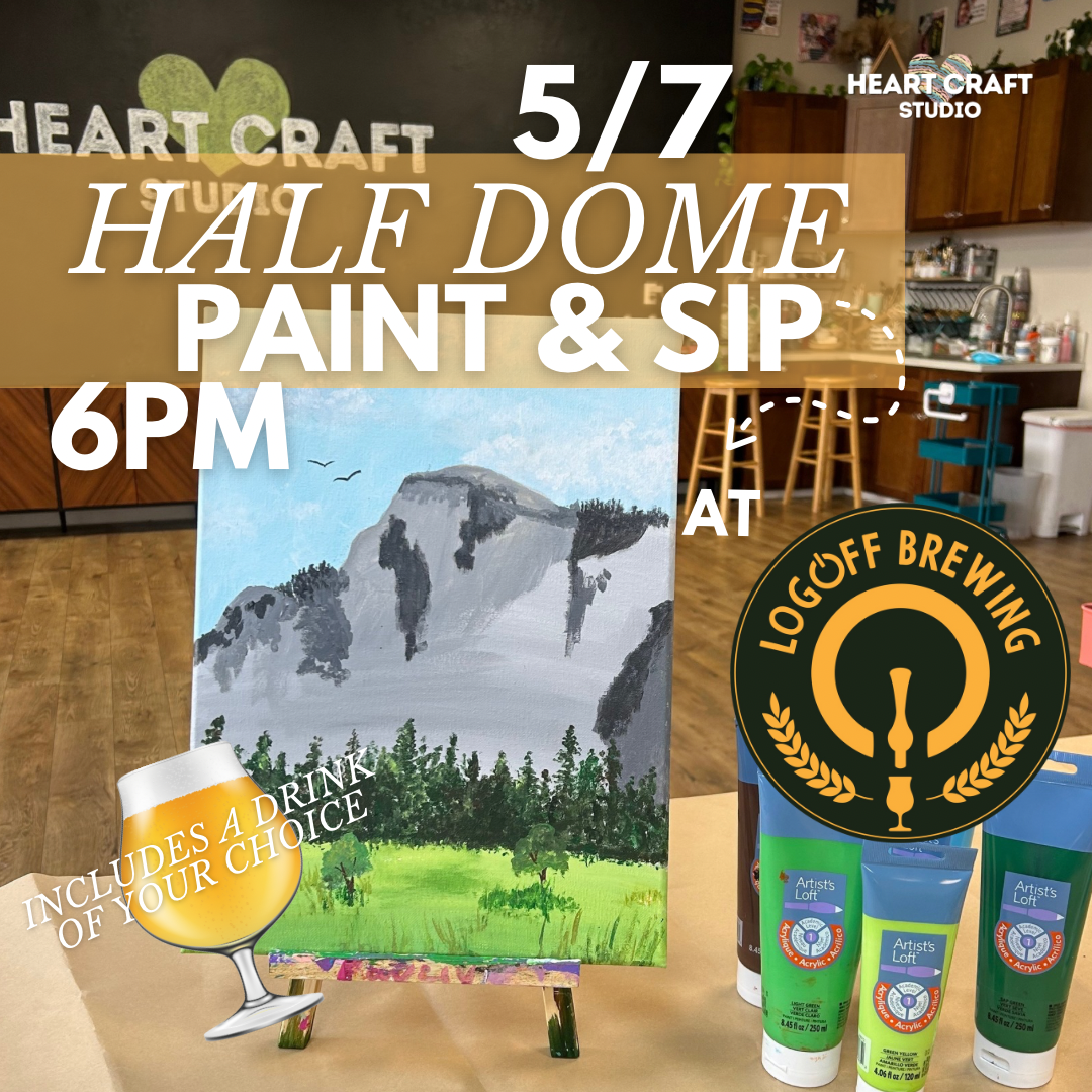 Paint and Sip with us on Tuesday, 5/7 at 6pm At Log Off Brewery - this week, we’ll be painting Yosemite’s Half Dome!