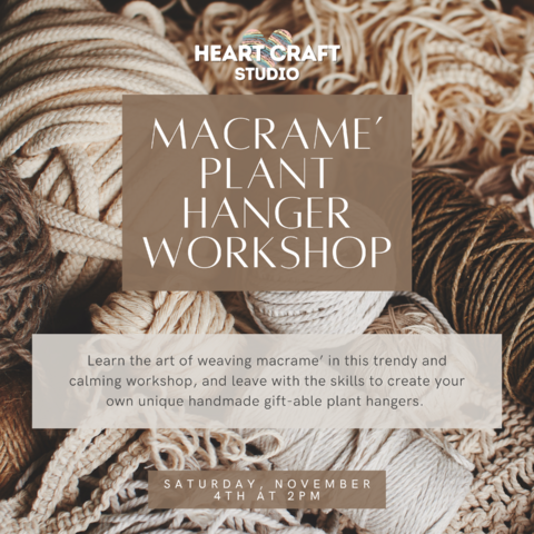 Fiber Art classes at Heart Craft Studio are engaging and creative classes that celebrates the beauty of macrame. In this workshop, learn to craft your own trendy Macrame' plant hangers that elegantly suspend lush greenery, and gain hands-on experience by learning various techniques to master the art of macrame.