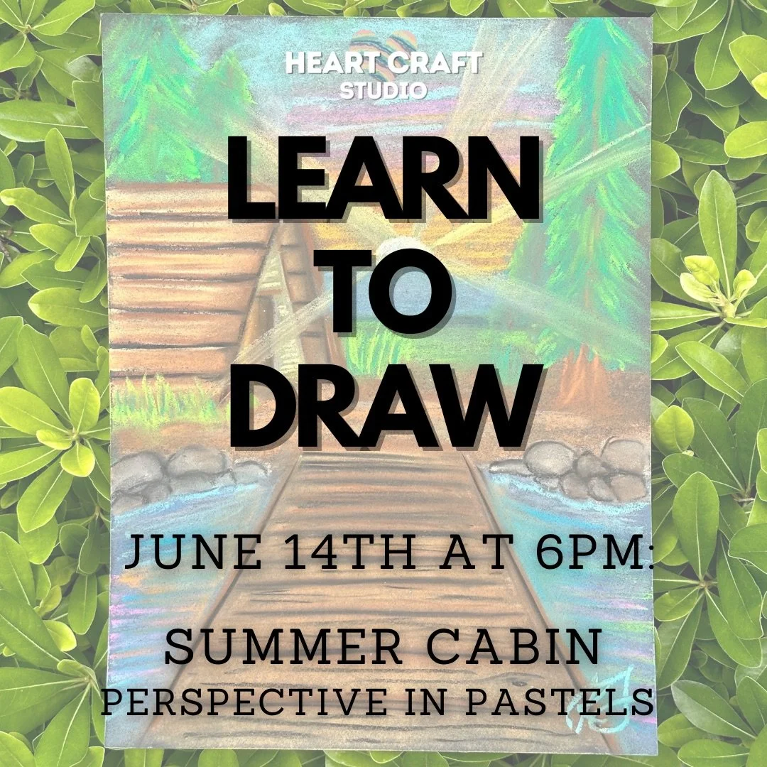 Expand your understanding of drawing with perspective at this all ages Pastel Summer Cabin Drawing class! All materials, supplies, as well as guided instruction included.