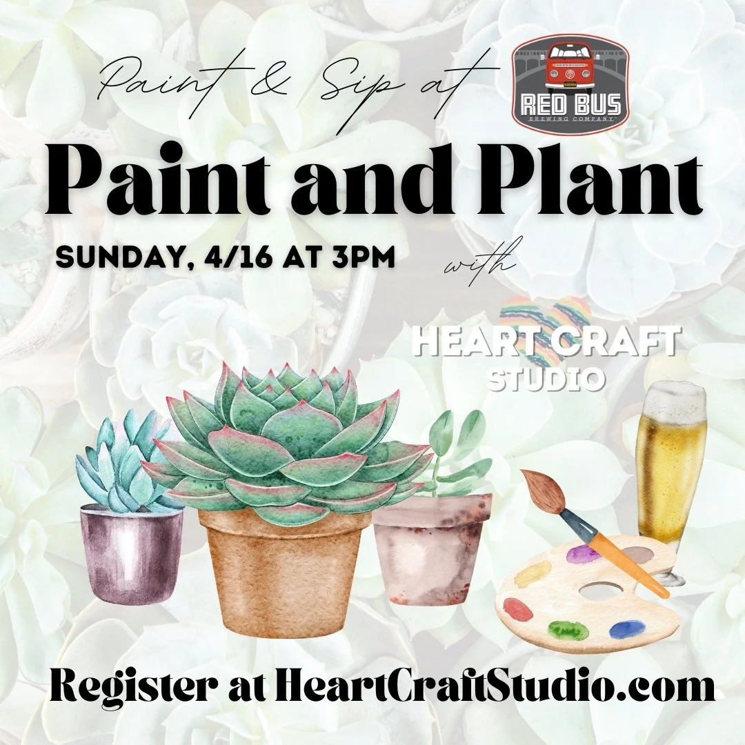 Join us on Sunday, 4/16 from 3-5pm at Red Bus Brewing in Folsom for a fun afternoon paint and sip! At this event, we will be painting clay pots, and then planting succulents in each! Cost includes everything you’ll need to customize your own unique pots (we will spray a coat of paint protectant on your pots, too!), as well as one pour of your choice!