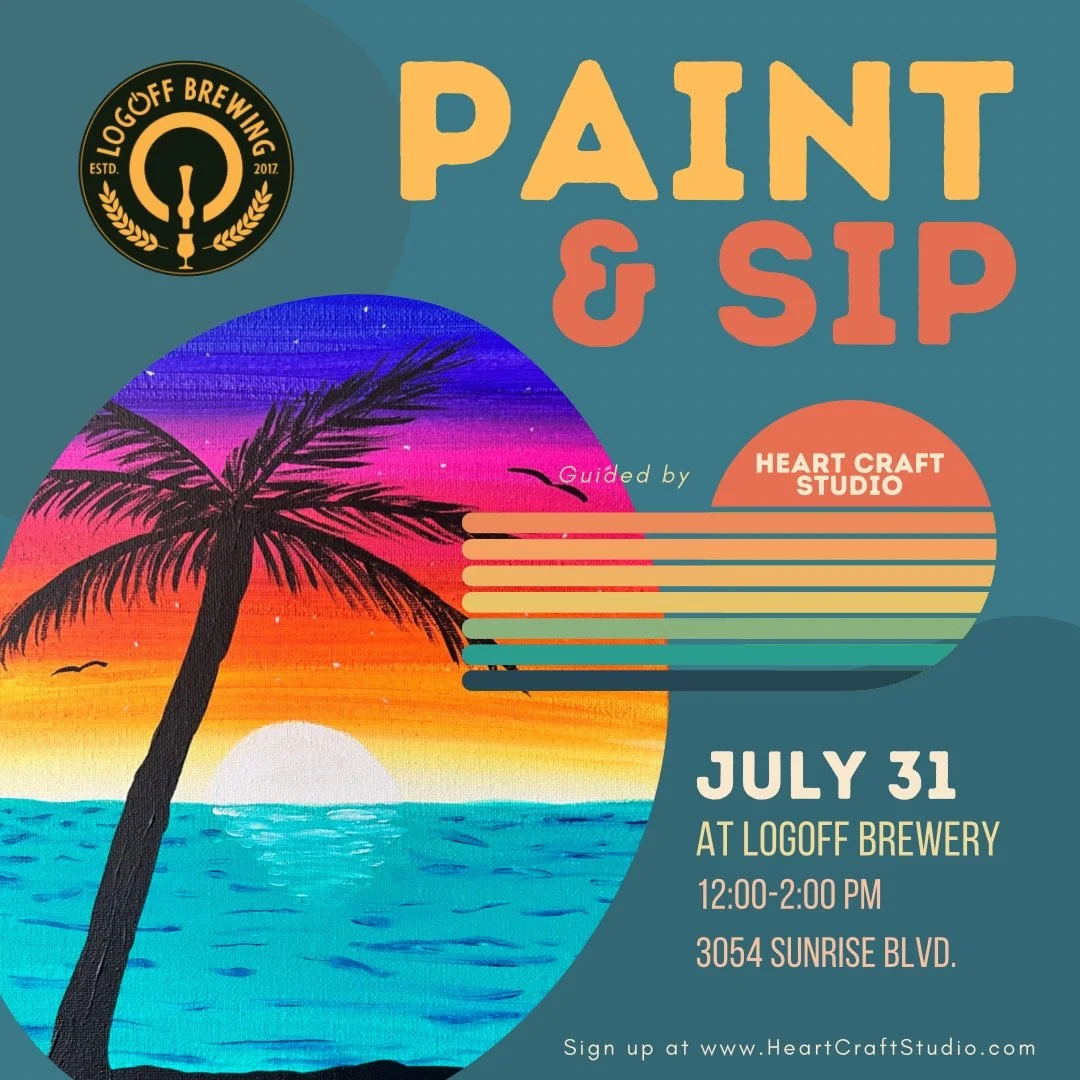 Join us at our neighbors LogOff Brewing for a fun paint night! We will be painting this Summer-y Sunset Palm painting on a 16x20 canvas.