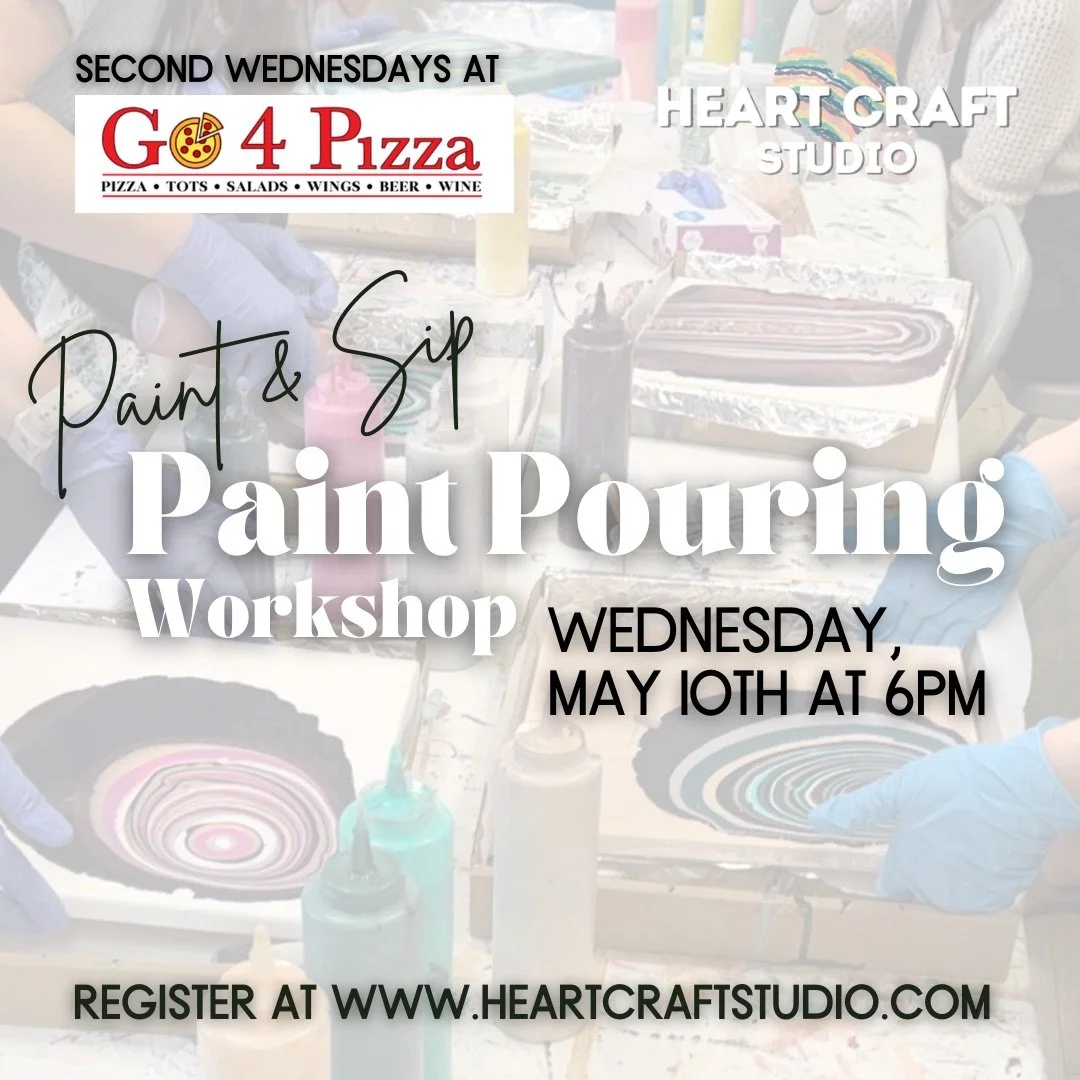 Take your fluid art to the next level at our Paint Pouring Workshop! I’m out next paint pouring class at Go 4 Pizza, you’ll have the option of creating a basic paint pour, or elevate your art with texture and make a geode paint pour!