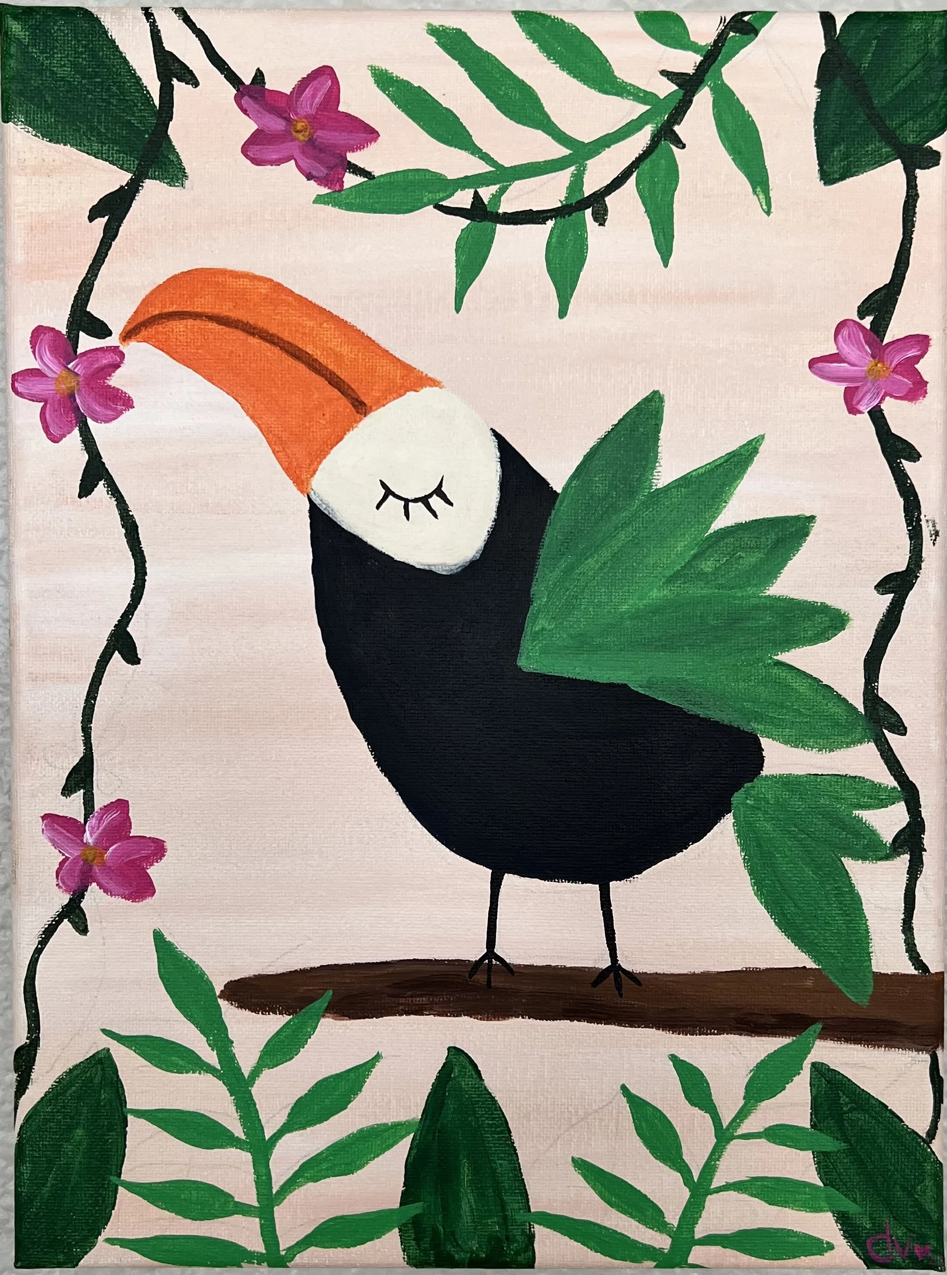 Cost is $30, and includes everything you will need to paint this fun, tropical toucan painting!