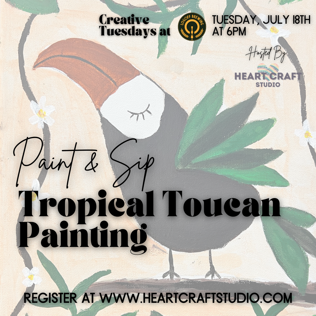 Join us at our neighbors Log Off Brewery for our next Creative Tuesday: Tropical Toucan Paint and Sip!